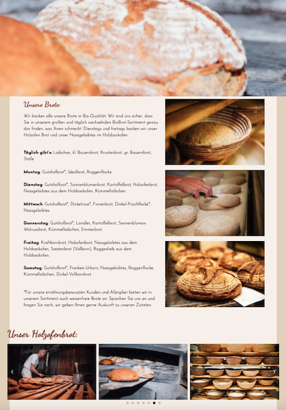 Kürzlich haben wir wieder ein sehr spannendes Projekt abgeschlossen. Wir durften für die Bäckerei Wolz aus Wasserlosen-Greßthal eine Homepage aufsetzen. Die hervorragende Qualität ihrer Produkte zeichnet vor allem das ehrliche Handwerk und die sorgfältig ausgewählten Zutaten, oftmals sogar aus der Region aus. Ein Großteil ihrer Backwaren sind schon seit Jahren bio-zertifiziert.